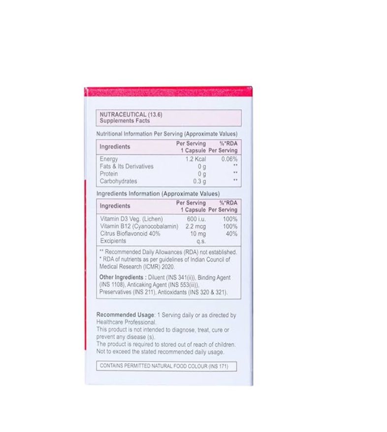 Vitamin B12+D3 combines two essential nutrients to support overall health. Vitamin B12 plays a crucial role in energy metabolism and maintaining healthy nerve function, while Vitamin D3 aids in calcium absorption and promotes bone strength. This supplement is designed to help fill nutritional gaps, supporting immune health and vitality with scientifically backed benefits. Ideal for those seeking to enhance their wellness routine with expert-formulated nutrients.
